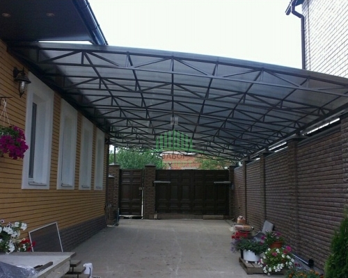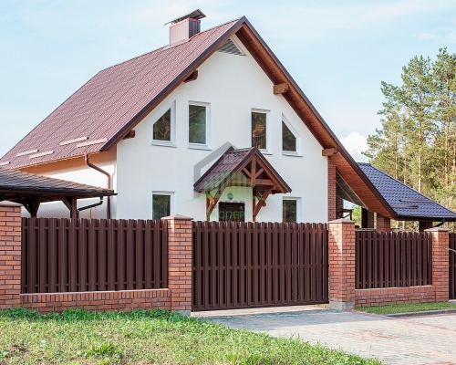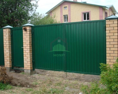 Откатные ворота, кирпич для столбов и все сопутствующие материалы для ленточного фундамента доставляются отдельно.